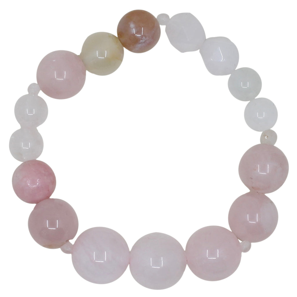 Materialer: Armbåndet er fremstillet af ædelsten i smukke pastelfarver ( 3-14 mm) og ferskvandsperler. Mål: Armbåndet passer til en håndleds omkreds fra ca. 15 til 16 cm.